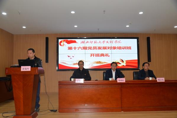 本网讯(通讯员 余复军)11月14日晚,乐动(中国)在图书馆报告厅举办学校第16期党员发展对象培训班开班典礼。党委书记杨邓红、党委副书记杨之毛,学生工作部部长汪崇文,部分党支部书记以及第16期发展对象培训班全体学员等参加了开班典礼。