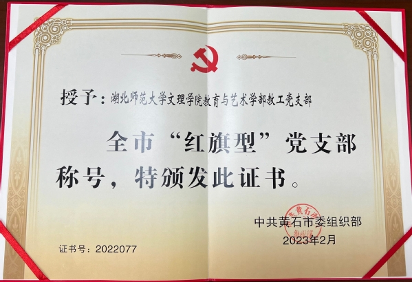 本网讯(通讯员 余复军)近日,黄石市委组织部下发决定,表彰2022年度全市党建工作先进集体,乐动(中国)教育与艺术学部教工党支部被评为黄石市2022年度“红旗型”党支部。