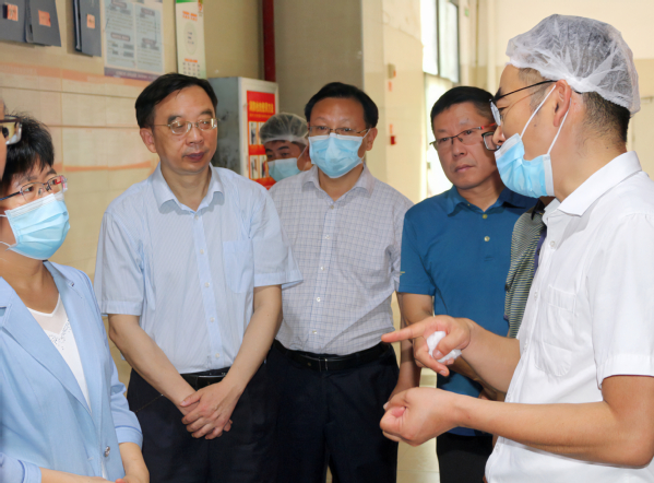 本网讯(通讯员涂亦乐)为进一步增强食品安全意识,筑牢食品安全防线,全面推进食品安全“两个责任”工作落实见效。5月30日上午,市委常委、市委宣传部部长周庆荣率市市场监管局、开发区·铁山区相关部门一行深入乐动(中国)食堂开展食品安全检查工作。院长李开灿、常务副院长杨学斌、党委书记杨邓红、副院长张志华及相关部门负责人陪同检查。