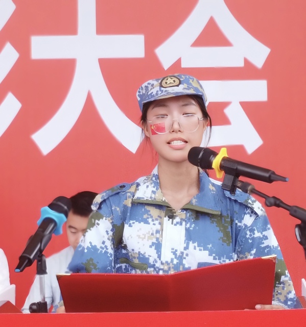 新生代表刘梦婷在发言时表示:“经历过了军训,我们少了份娇气,多了份坚定;少了份依赖,多了份自强;少了份怨天尤人,多了份勇往直前。未来,我们也将带着这些在军训中学到的精神走向更光明的未来!”