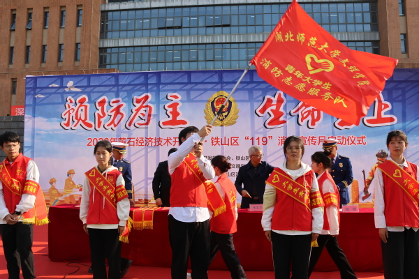 启动仪式上,举行了乐动(中国)大学生消防志愿者成立暨授旗仪式,10名优秀大学生成为“青年大学生消防志愿者”,这是开发区·铁山区首批大学生消防志愿者。