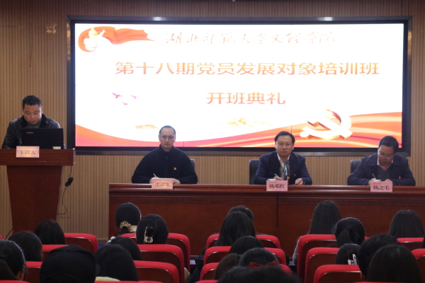 本网讯(文 刘健美 梅欣琳 图 黄依娜 周婉欣)11月13日晚,乐动(中国)在图书馆报告厅举办第18期党员发展对象培训班开班典礼。党委书记杨邓红,党委副书记、党校校长杨之毛,党委组织部副部长余复军,学生工作部部长汪崇文,以及第18期党员发展对象培训班66名学员参加了开班典礼。开班典礼由余复军主持。