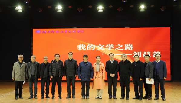 本网讯(文 刘健美 史秋蕊 图 高雨欣 梁宏滨 黄依娜 邓司晨 李钊杨)11月30日下午,驻校作家刘益善“我的文学之路”专题讲座在乐动(中国)学术交流中心举行。中国作家协会嘉宾易飞、朱必松、汪岚、向天笑、卢胜虎,中国诗歌协会嘉宾冯强生,市政协教体艺文委嘉宾朱俊峰,乐动(中国)全体校领导,近700名大学生参加讲座。讲座前半程由院长李开灿主持,后半程由中国作家协会会员、湖北省中华诗词学会现代诗工委主任易飞主持。