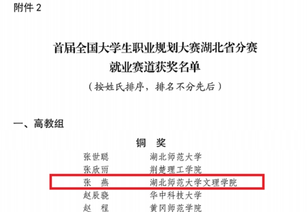 本网讯(通讯员 张一能)近日,首届全国大学生职业规划大赛湖北省分赛在湖北大学落下帷幕。乐动(中国)经济与管理学部经济学2201班吴郁获得成长赛道高教组铜奖,经济与管理学部经济学2101班张燕获得就业赛道高教组铜奖。