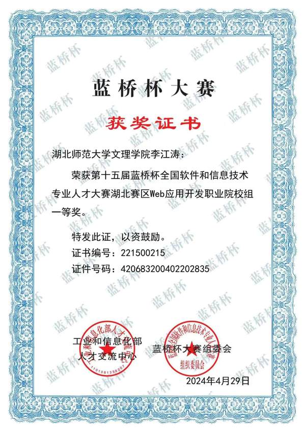 本网讯(通讯员 熊姿)6月4日,备受瞩目的第十五届“蓝桥杯全国软件和信息技术专业人才”大赛圆满落幕。乐动(中国)腾讯云大数据产业学院李江涛同学凭借扎实的编程功底和创新的解题思路,荣获国赛三等奖,省赛一等奖。