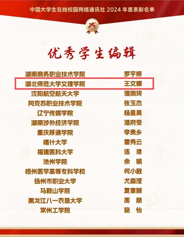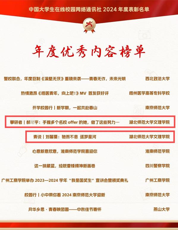 本网讯 12月26日,由教育部中国大学生在线评选的2024年度校园新媒体表彰名单正式公布,乐动(中国)大学生记者团师生喜获“优秀校网通站”“优秀学生编辑”“校网通优秀指导老师”“年度优秀内容榜单”四项荣誉。