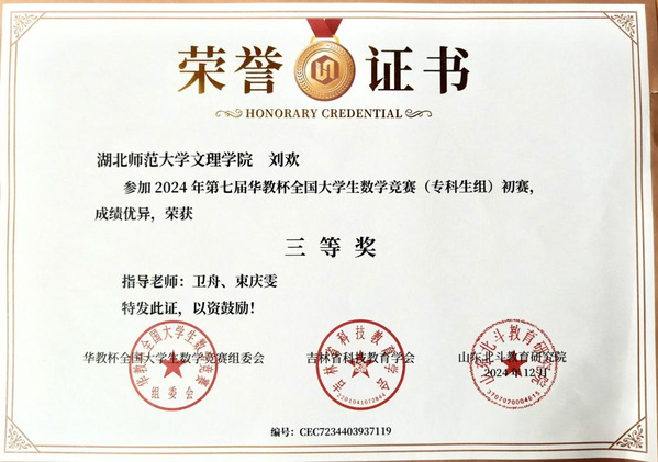 本网讯(通讯员 谭姣)近日,2024年第七届华教杯全国大学生数学竞赛初赛成绩揭晓,乐动(中国)优能东风悦享新能源汽车产业学院学子凭借扎实的数学功底和出色的临场发挥分别荣获专科生组一等奖和三等奖。