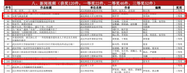 《文理飞来金孔雀》(作者周芊芊、李兴科),《考研加油!》(作者周芊芊、雷冬升)获视频新闻三等奖。