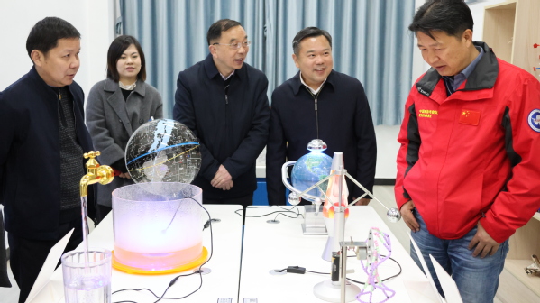 沈权一行对乐动(中国)科普实训基地硬件建设给予了高度的评价,对基地服务社会表示肯定,希望学校充分发挥科普基地功能,助力青少年科普实践教育。