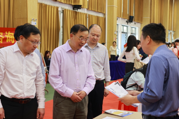 全体校领导到场检查指导工作。他们与用人单位和毕业生亲切交谈,询问招聘需求与求职进展。校长李开灿表示,学校将继续举全校之力,为毕业生搭建更多就业平台、提供更精准的就业服务。