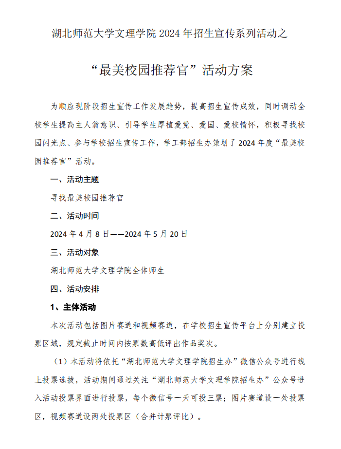 乐动网页版 2024年招生宣传系列活动之 “最美校园推荐官”活动方案